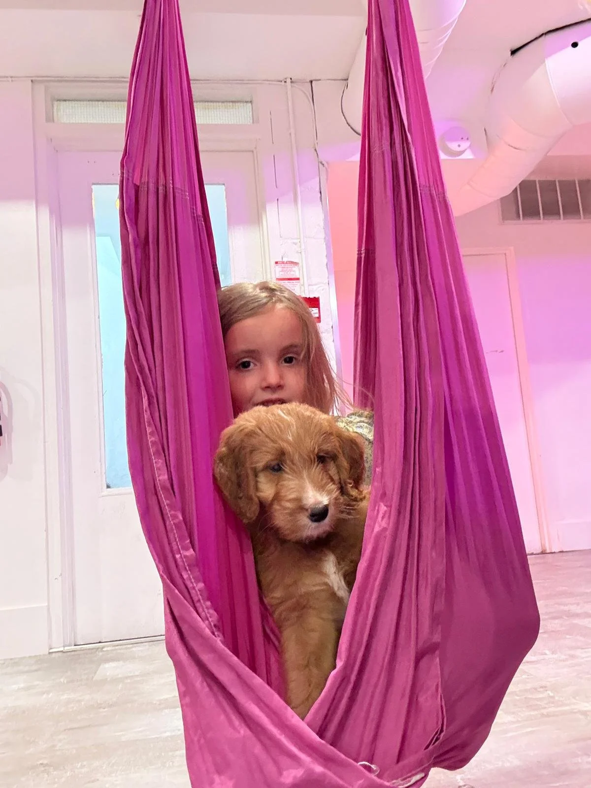Private aerial yoga + puppies? What could be a better party! Now you can book out our private aerial yoga classes featuring the Pudgy Pups.